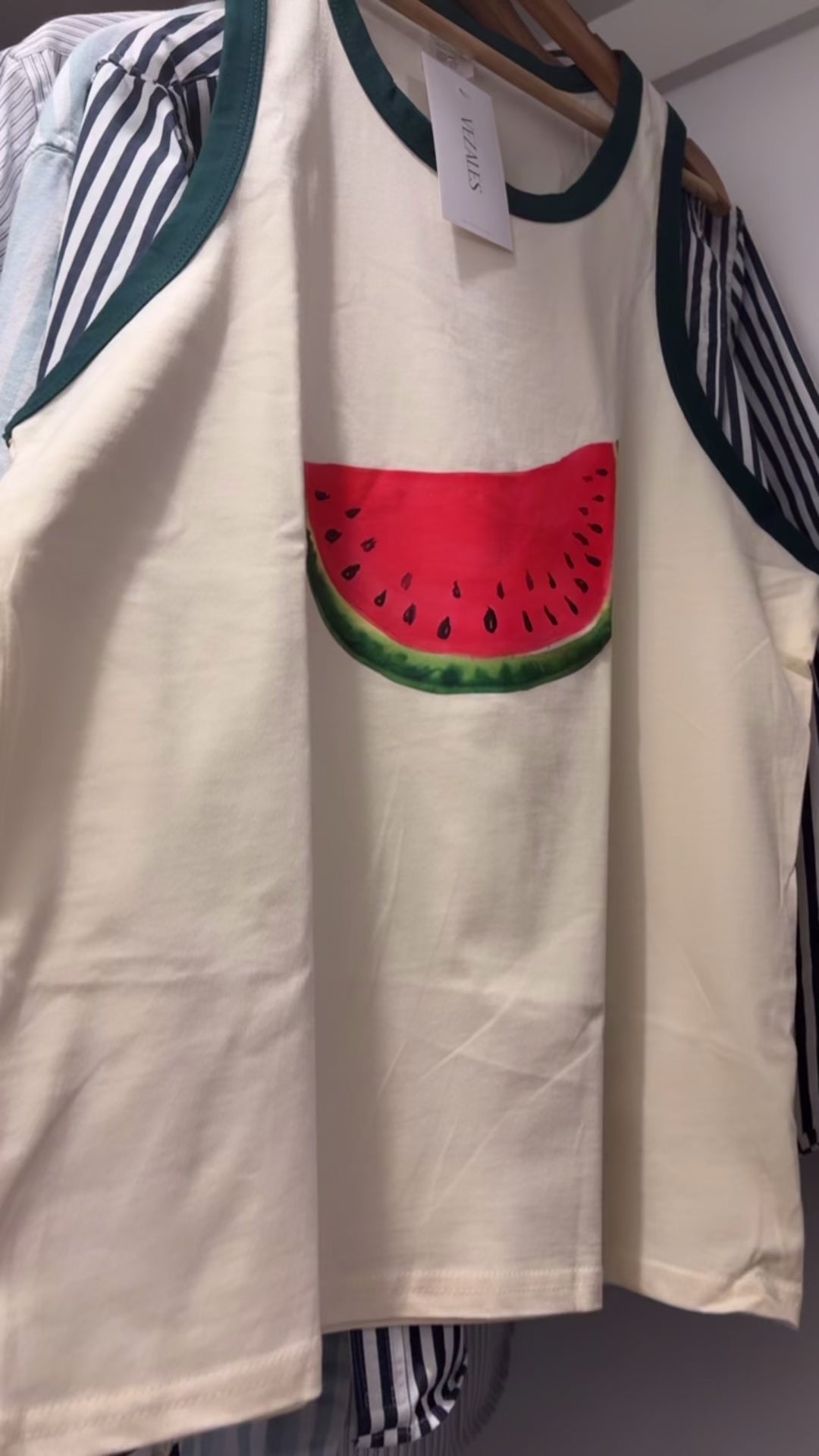 El detalle de sandía aporta un toque divertido y moderno, perfecto para quienes buscan algo distinto sin dejar de verse bien.